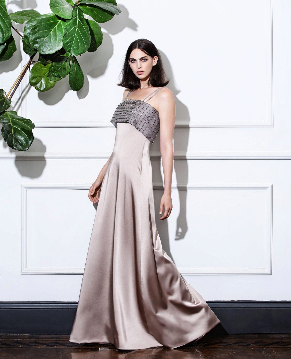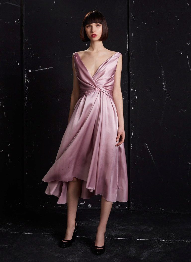 At a cocktail party or an informal setting, even in a dress of simple cut crepe de chine, you will not be left unnoticed. Luxurious shine with minimal rhinestone or lace decor will add elegance and refinement to the image.