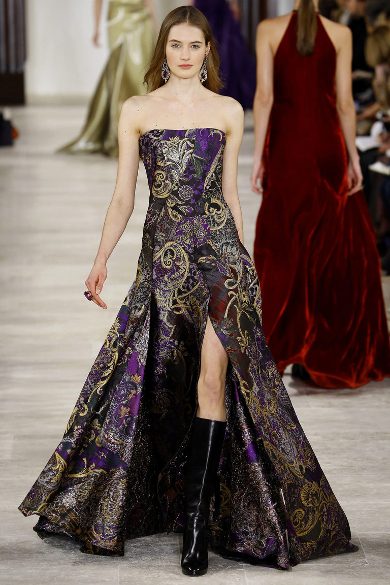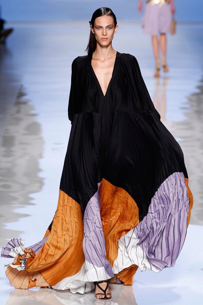 Asymmetry, drapery, flounces and ruffles, train and cuts, sleeves and collars, and many other elements adorn the models.