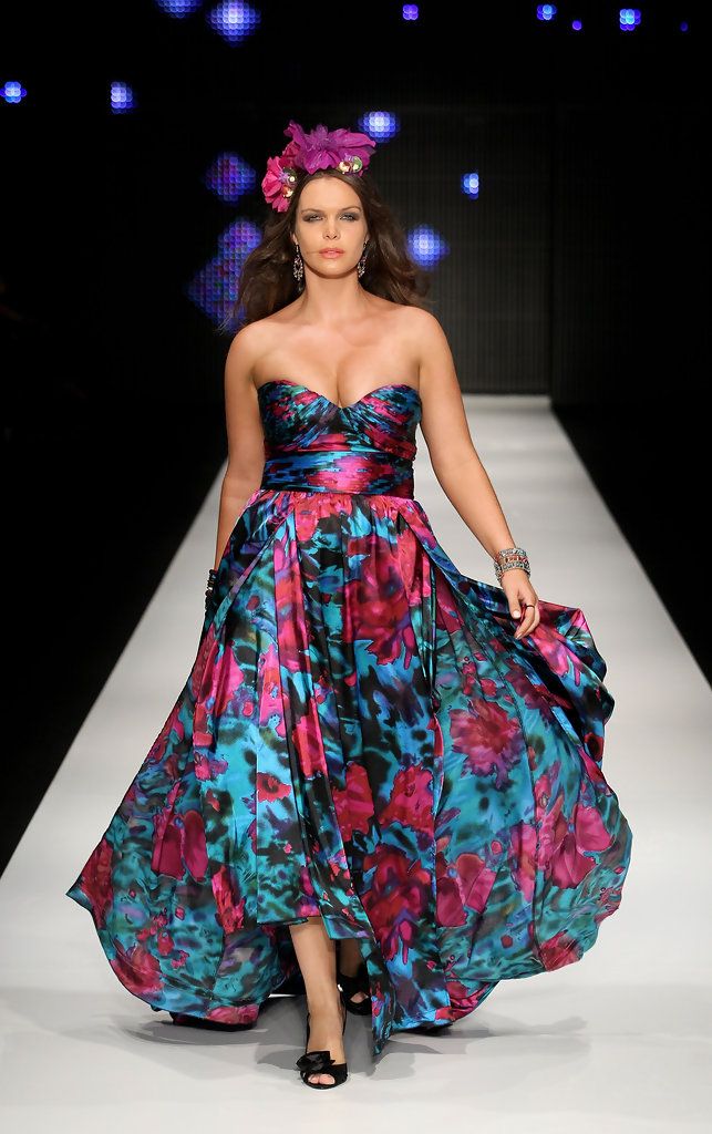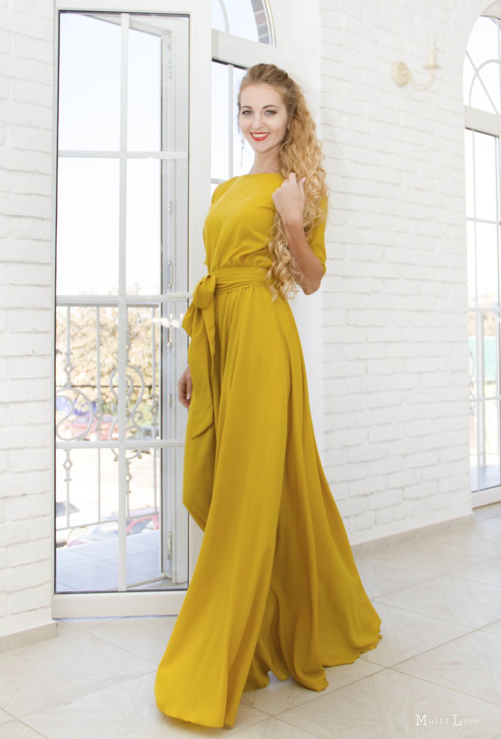 Elegantly full girls will look in long crepe de chine dresses. It is interesting and attractive to look dresses with a high waist, tied with a ribbon under the chest line. The fitted silhouette is perfect for women with an hourglass figure.