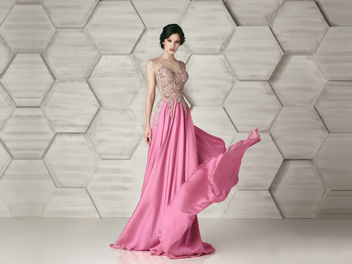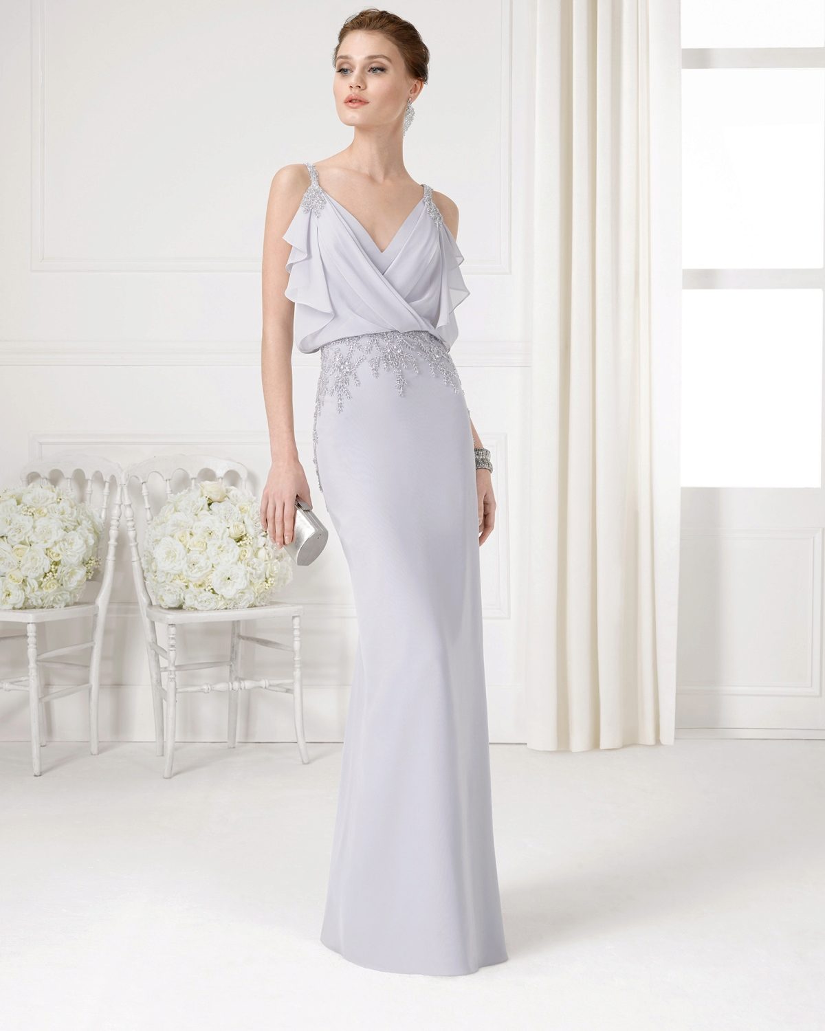 In the fashion collections of couturiers, there are a large variety of long dresses of crepe de chine for every day and for special occasions with a train and a flying hem.