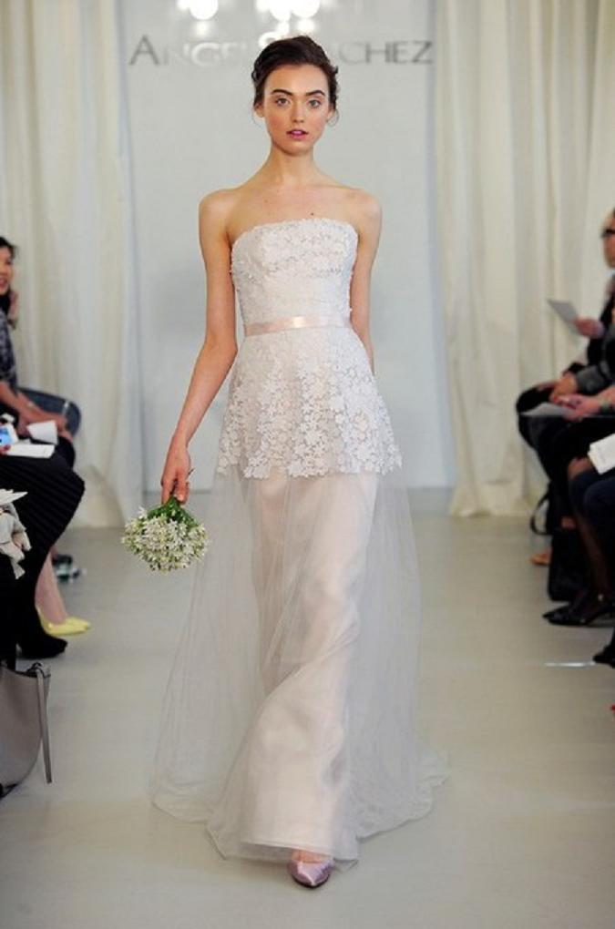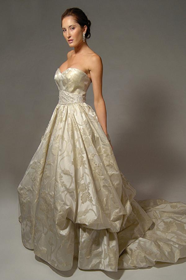 Since the material itself is richly decorated, brocade dress styles are usually very simple.The most popular among brides are silhouette dresses with a hard bodice, emphasizing the chest, and a long skirt with flared from the waistline or from the middle of the thigh.