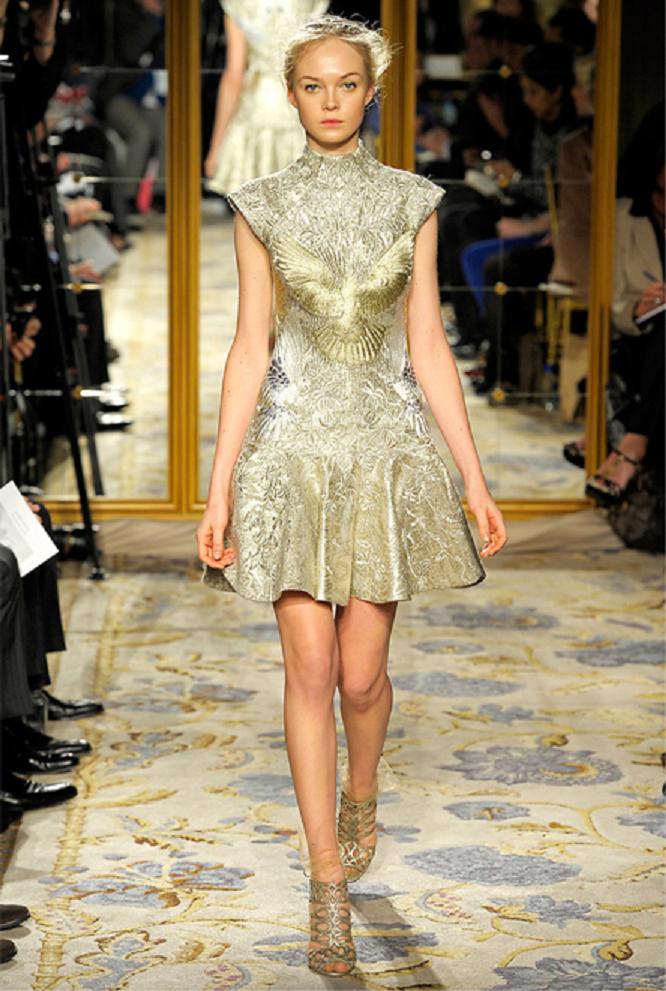 The word "brocade" is of Persian origin. The fabric itself was brought to Europe from the East, where it was made from antiquity. Brocade is a heavy material, richly decorated with patterns that are embroidered with the finest metallic thread. Thanks to a special texture, even the simplest brocade outfit looks truly luxurious.