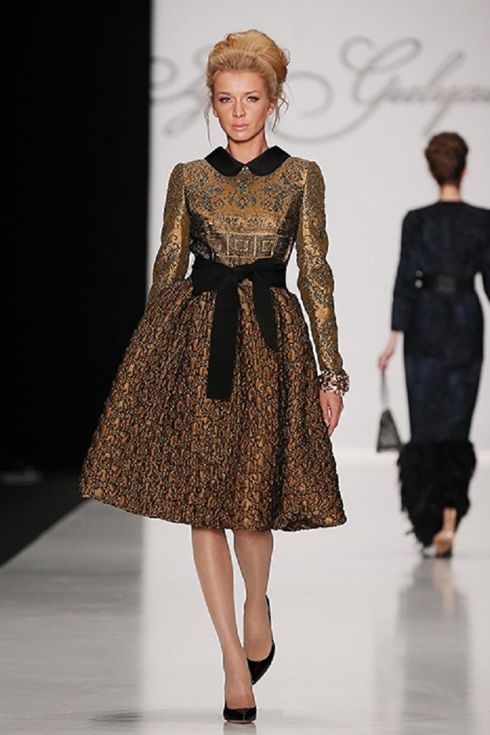 Traditionally, brocade was used for sewing elegant dresses for the most solemn occasions. Therefore, the classic dress of brocade is a ball gown with a long, full skirt. Modern girls the opportunity to dress in a similar outfit is provided infrequently, but, nevertheless, brocade firmly entrenched in our wardrobes.