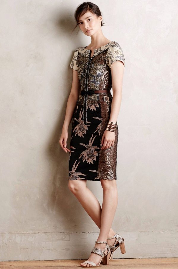A perfect option for an evening out in the cool season is a brocade dress. Evening and cocktail models of brocade dresses are very diverse. This can be as elegant dresses with a skirt to the floor, and quite frank mini.