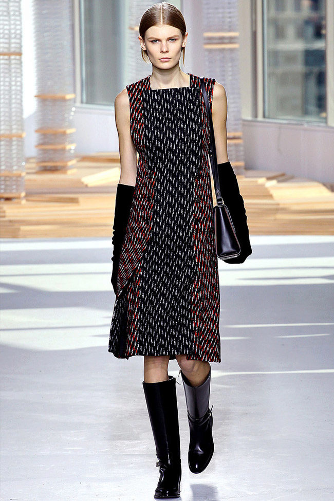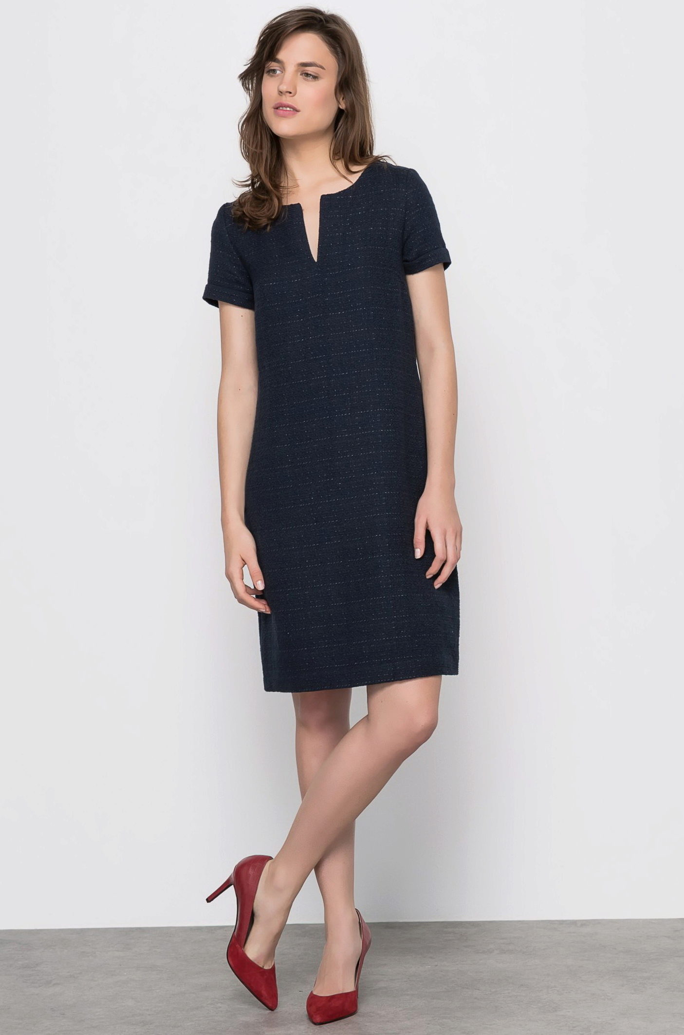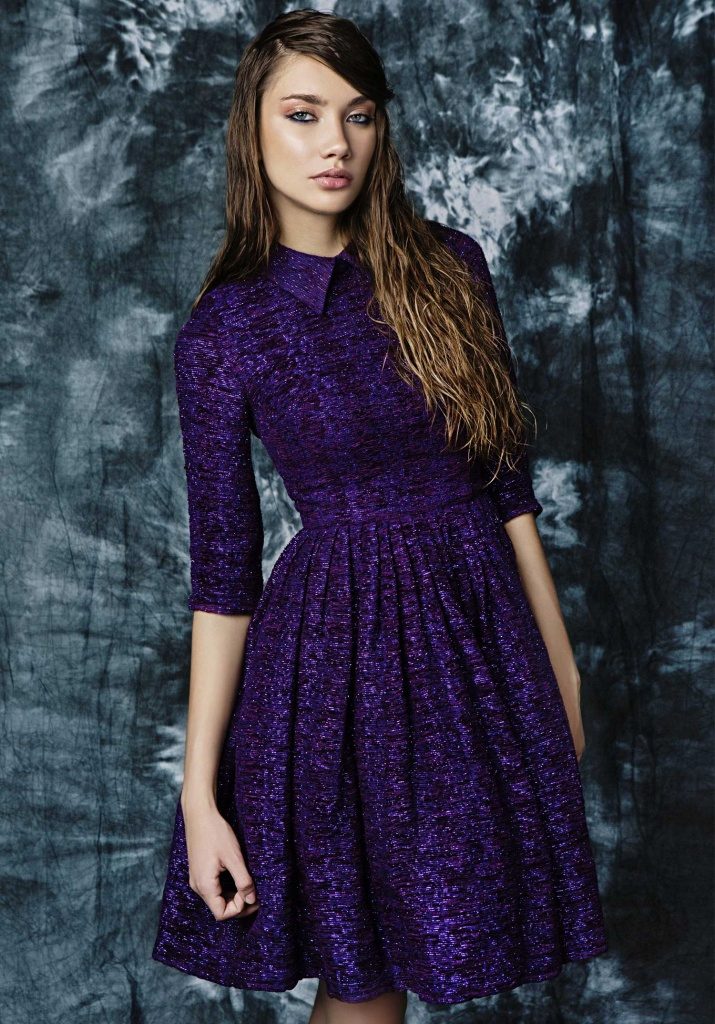 Since this fabric is rather dense, it does not drape well, so tweed dresses usually have the most simple, straight or slightly fitted silhouette. However, if you choose a thinner tweed, with the addition of artificial fibers, you can find a dress with a voluminous skirt like a tulip or a bell.
