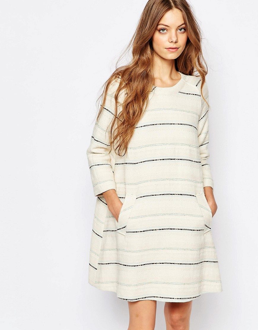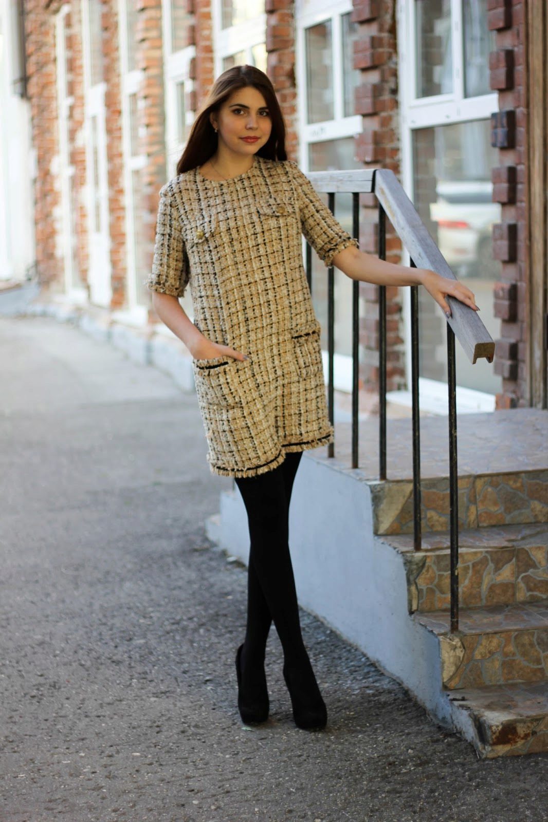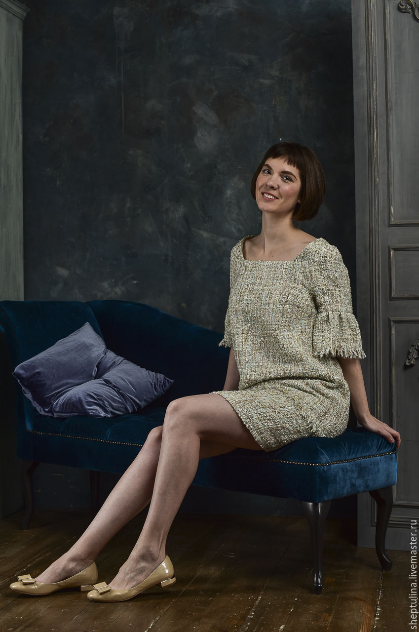 Tweed for the most part consists of wool, so it needs careful care, otherwise the product may lose shape. It is recommended to wash the tweed dress in warm water (at a temperature not exceeding 30 degrees) manually or in a washing machine in the delicate wash mode.