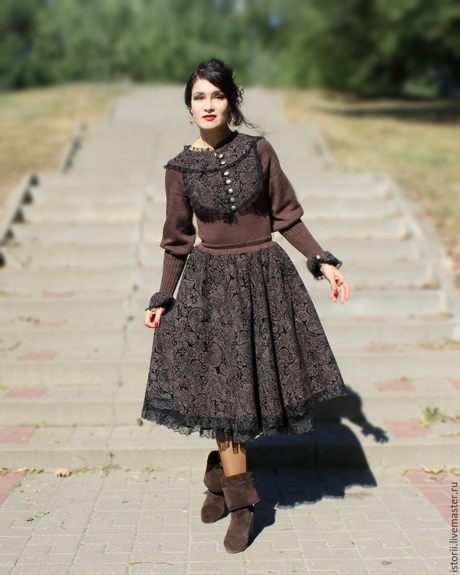 To prevent the dress from deforming during drying, spread it horizontally on a dryer or on the floor, putting light cotton under it. Turn the product inside out before ironing. The iron should not come in contact with tweed, so you need to iron the dress through a moistened thin fabric or gauze.