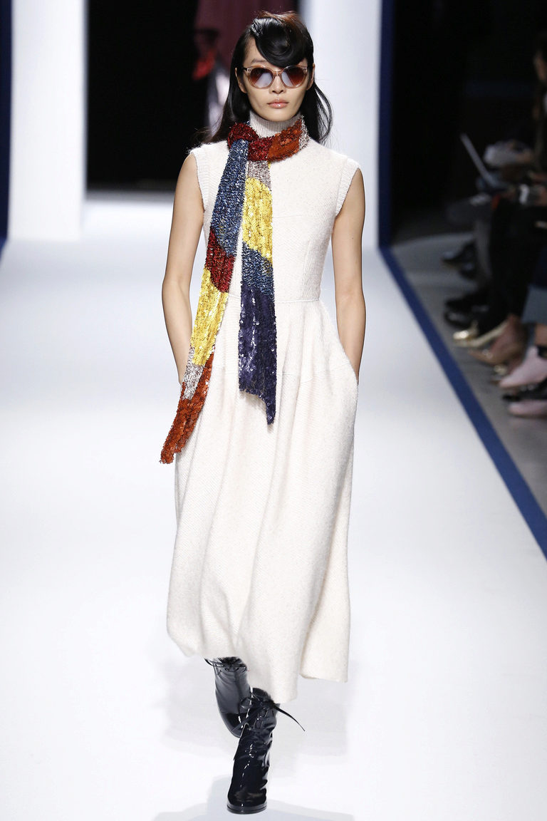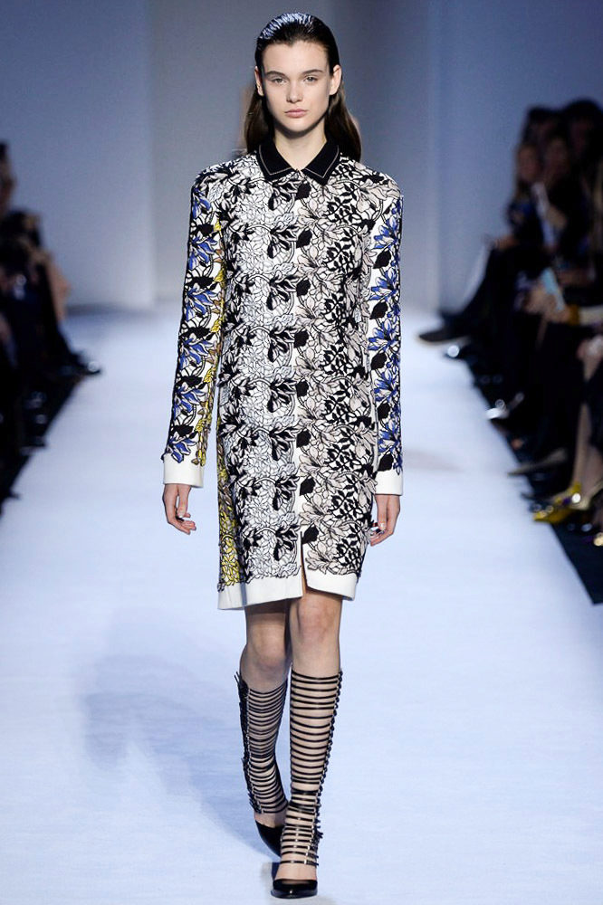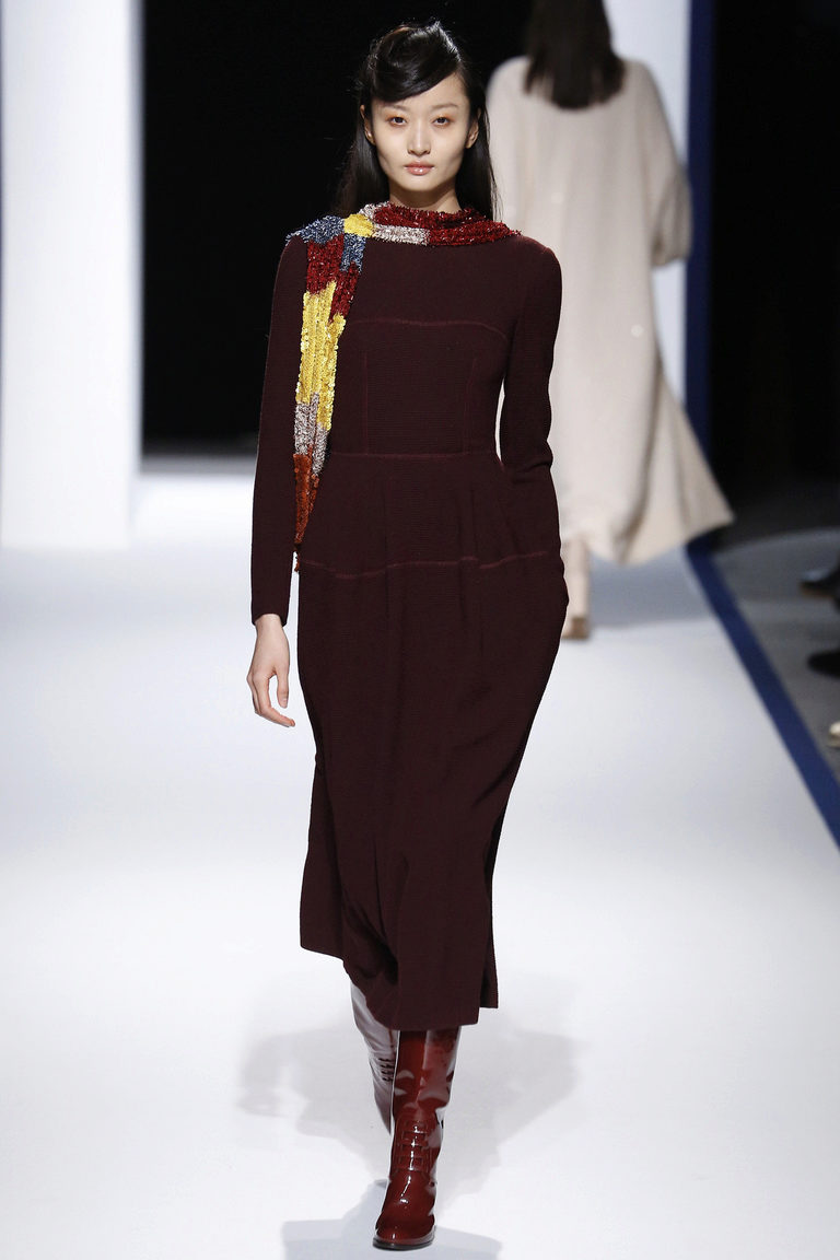 Designers turned their attention to prints that adorn any wool dress. Under the Peter Pilotto brand, models with color prints are produced. The dress turns into a canvas on which a violent action takes place with the participation of abstract and graphic mosaic prints.
