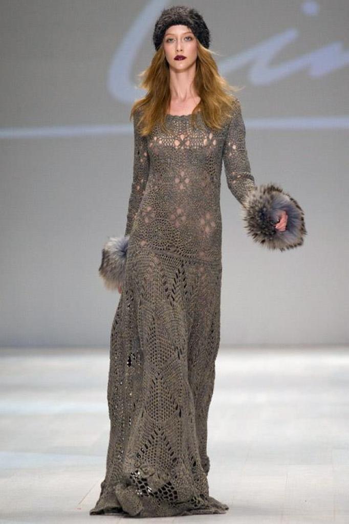 - Glamorous style successfully coexists with woolen dresses. Designers have learned to combine convenience with beauty, and glamor with comfort. One has only to look at long dresses with a low top and glittering decor, so that there is no doubt left.