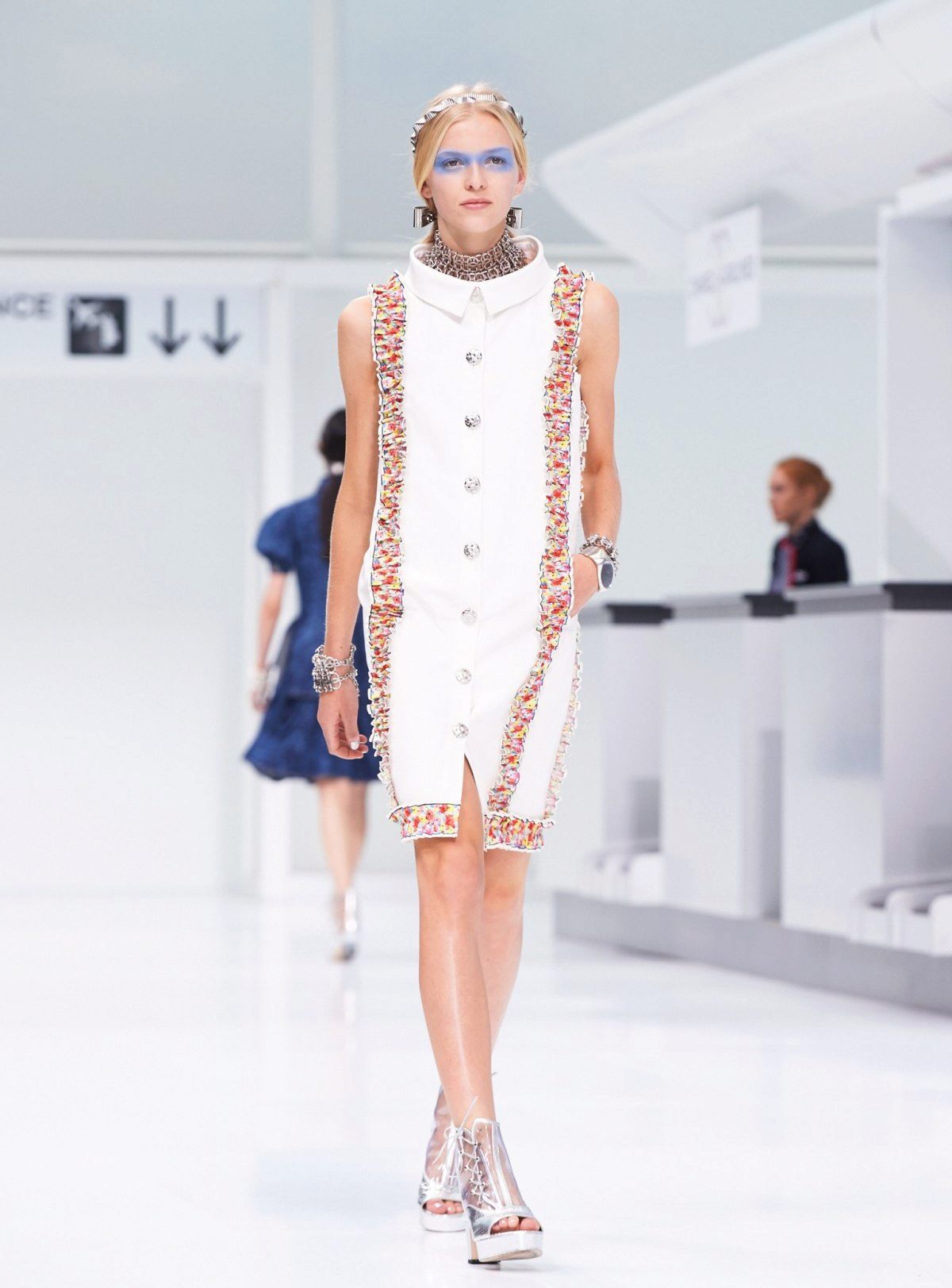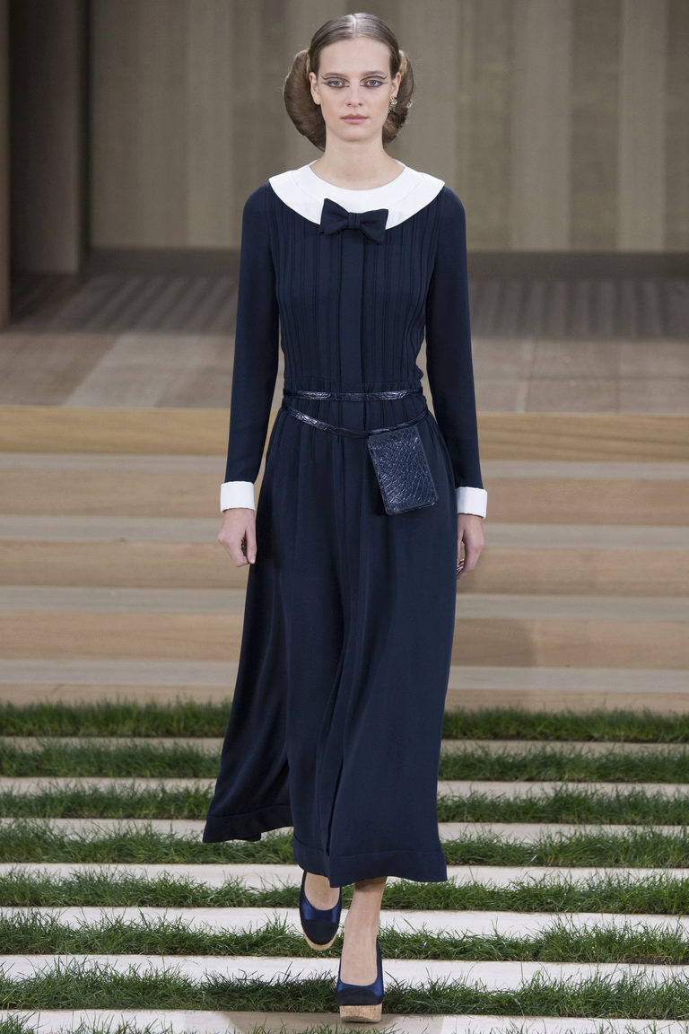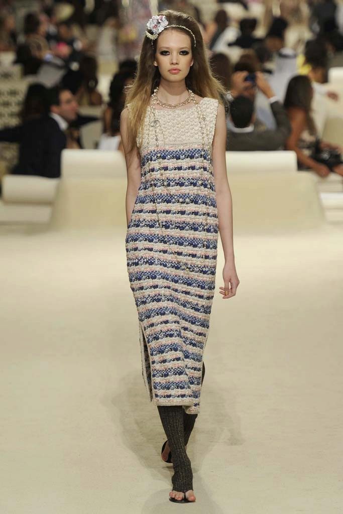 Among ladies of all ages, there is a tendency to choose dresses with very long sleeves that cover not only the whole hand, but even a part of the hand, sometimes reaching the fingers.Visually similar outfits can be viewed in the collections of Chanel.