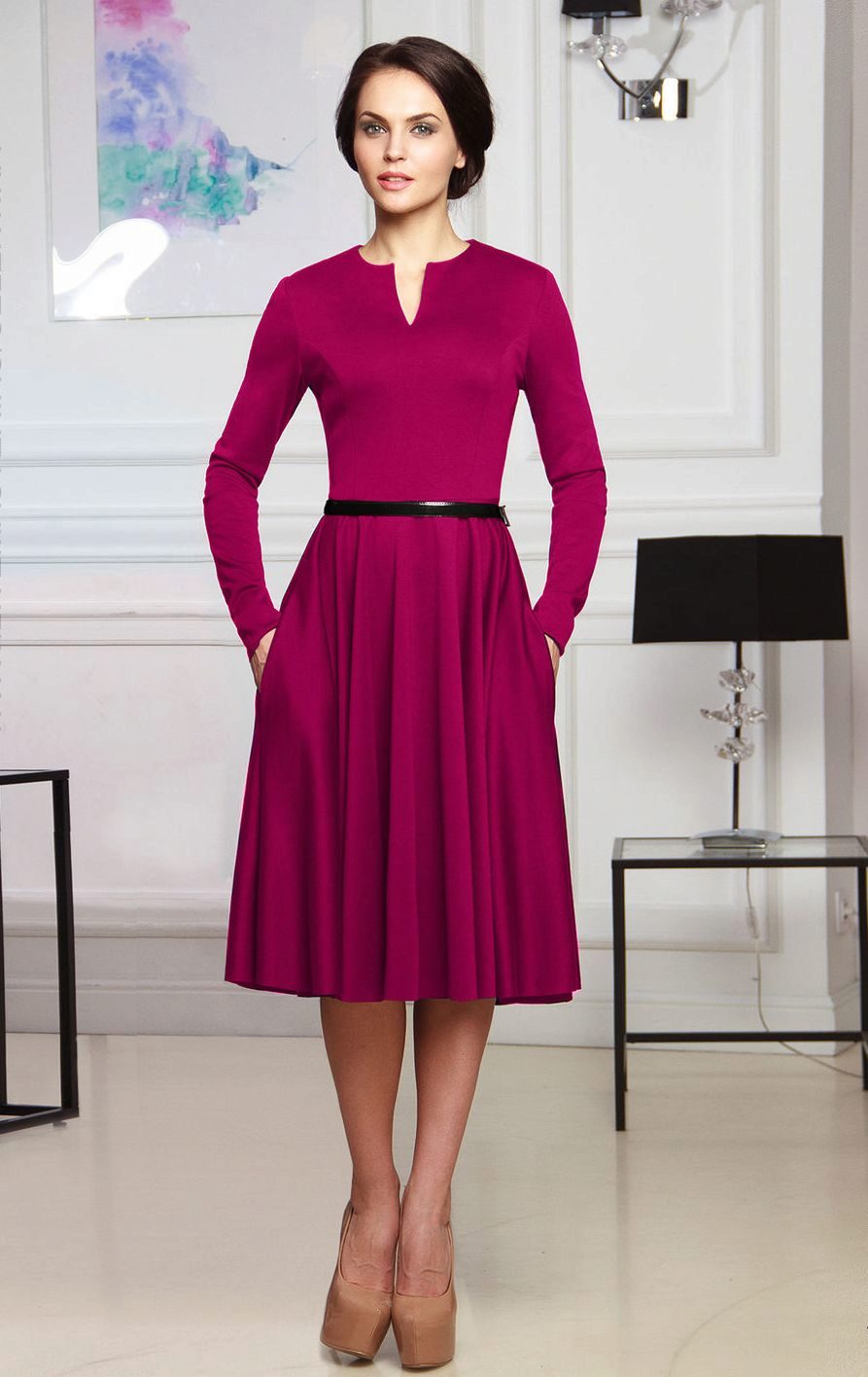 For the autumn period, a similar outfit will look good with a light coat or raincoat. For any occasion you can find a dress made of felted wool and be irresistible in its originality.