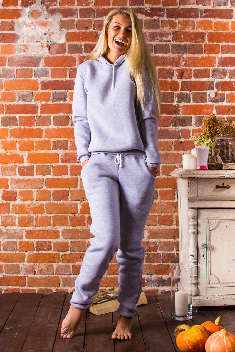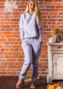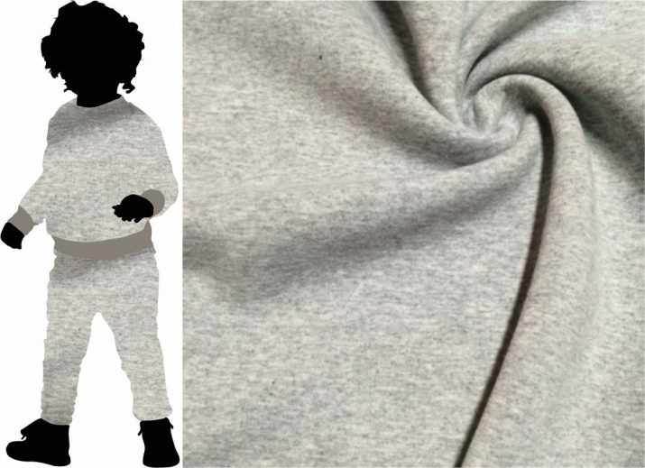 - Footer with fleece - thermal underwear and children's overalls, as a rule, are made from this fabric. In things from this material, the skin breathes due to a dense pile, which perfectly retains heat inside. Gray melange is the most popular type of such footer. It is a material consisting of cotton and synthetic fiber in the proportion of 80/20 percent, respectively. It is used for the production of sports suits and elements of outerwear, since this fabric is non-marking.