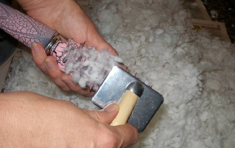 If the synthetic fiber is felled or has become less bulky, you can beat off the jacket with a stick, or you can get the filler by making a small incision on the wrong side, and comb the synthetic winterizer with a special tool. Then the heater returns to the place, and the jacket is re-quilted.