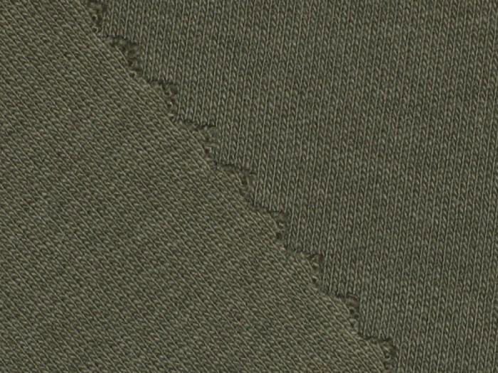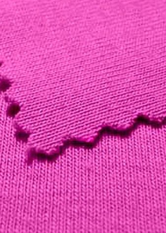 The fabric is knitted from medium-sized cotton fibers, which are quite smooth, although a bit loose. Therefore, knitwear is not so dense, has a slightly fleecy and not so smooth surface, like a singing. This is a thicker, but loose cloth.