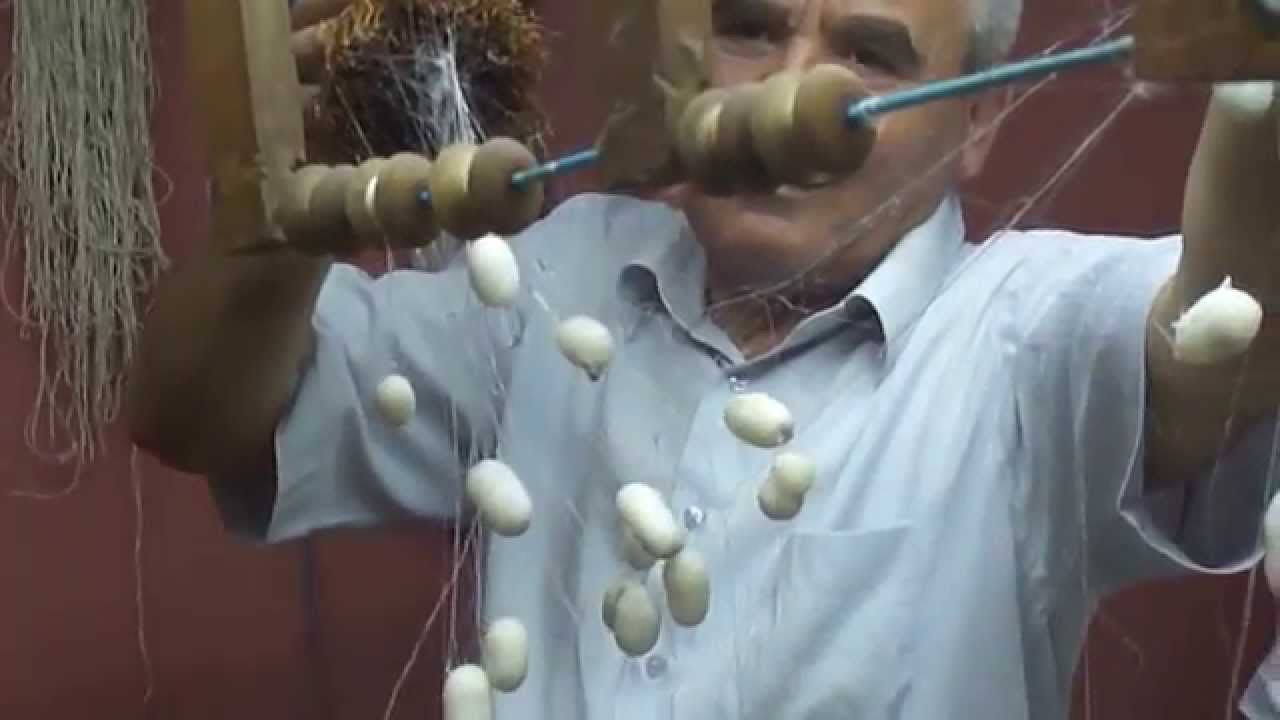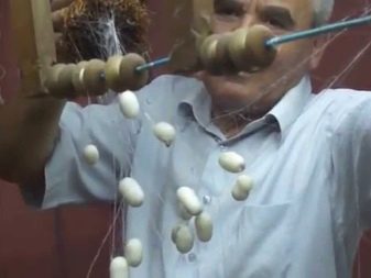 Silk is obtained from silkworm cocoons, unwinding and twisting them into threads.