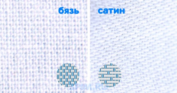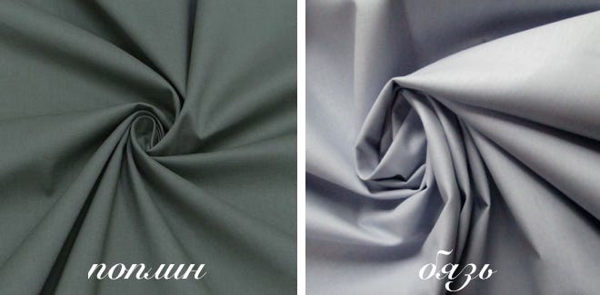 Looking at the pattern, skillfully executed on a loom, you can see that calico, poplin and satin are completely different fabrics. For example, satin is smooth and silky front side. Poplin does not have such shine, conquering consumers by weaving in the form of a hem. Such a pattern can be obtained by interlacing threads of different thickness and their further combination. Calico is simple and easy to manufacture, and the pattern of its threads forms the usual cruciform steps.
