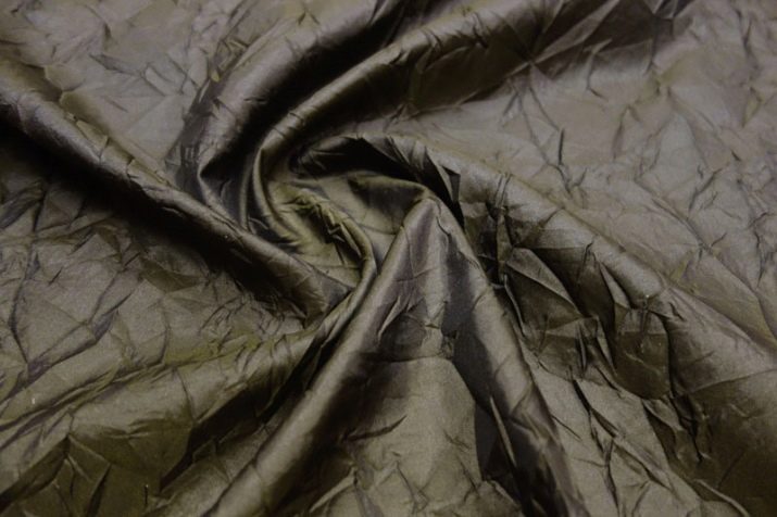 The peculiarity of taffeta is that it is made from threads tightly twisted with each other, which have a characteristic plain weave. Due to the special production technology, the matter is very thin, but at the same time dense and holds the desired shape very well.