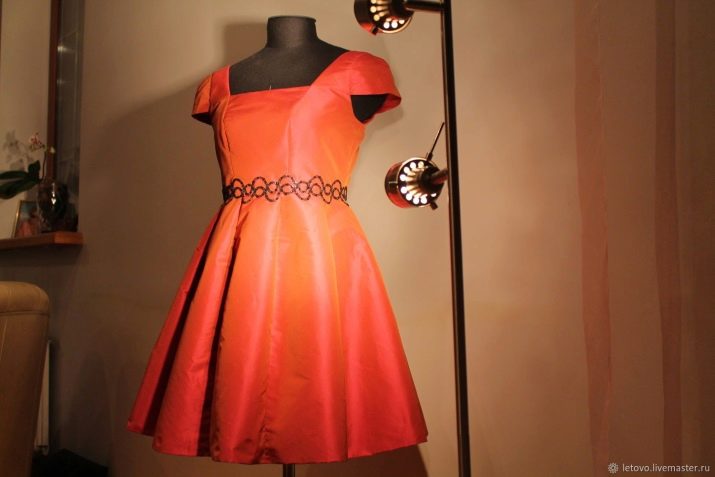 Taffeta is definitely an expensive material, but at the same time extremely naughty. He needs special care, otherwise the look of the thing can be hopelessly flawed.