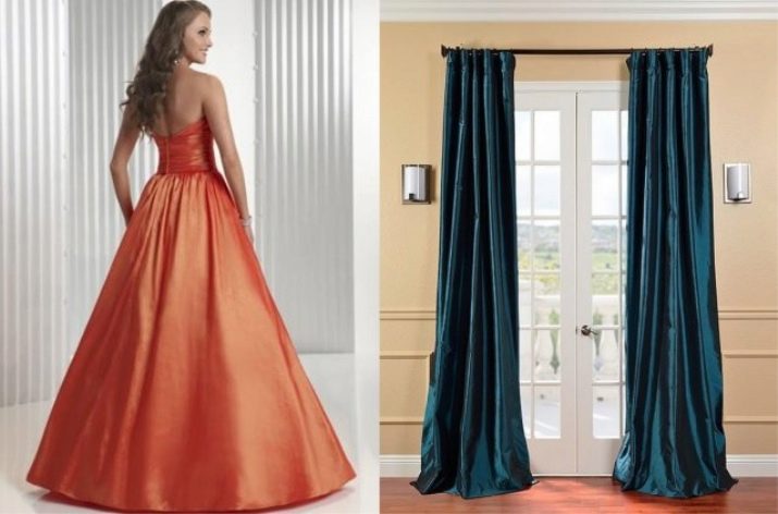 First of all, the fabric is used for making clothes. And from it make dresses, trousers and blouses for everyday wear, and evening dresses. Taffeta has a tendency to keep its shape, it is dense and standing, therefore stage and carnival costumes, as well as wedding dresses, are often created from it.