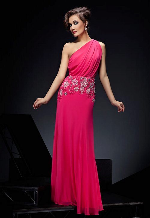 - Asymmetrical dresses. The most popular models of viscose on one shoulder, as well as with a sloping hem.