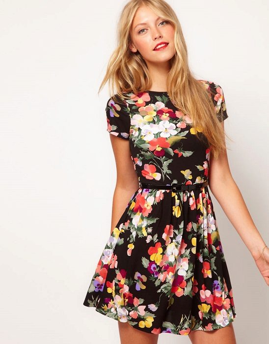 - Flared skirt models with low waist. The skirt of such dresses is pleated or decorated with flounces, and the upper part can be either loose or tight.