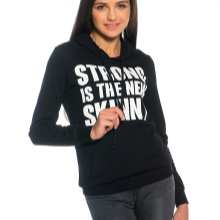 Sweatshirt - a universal thing, which occupies a worthy place in the wardrobe of every woman. It is practical, represented by many styles and models, as well as color solutions. The most sought after are black hoodies, because they harmoniously combine with different elements of the wardrobe.