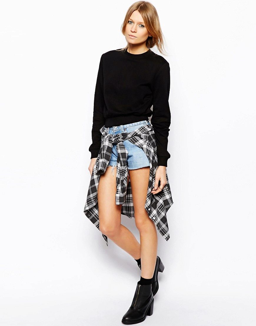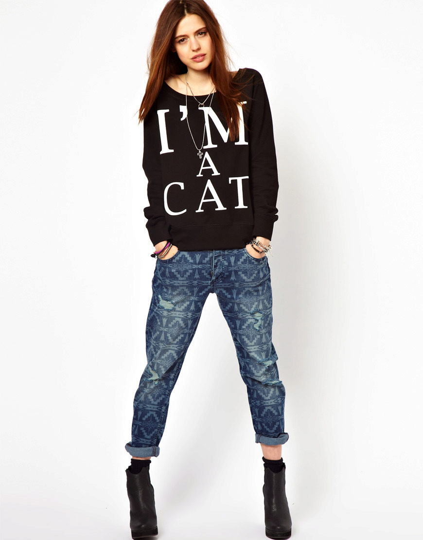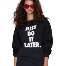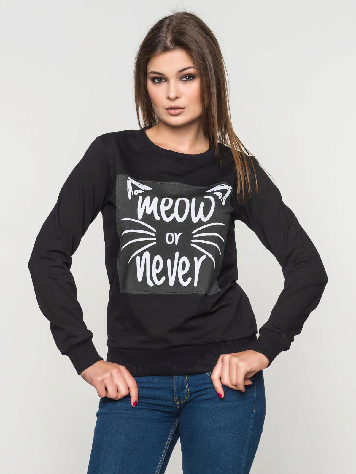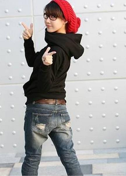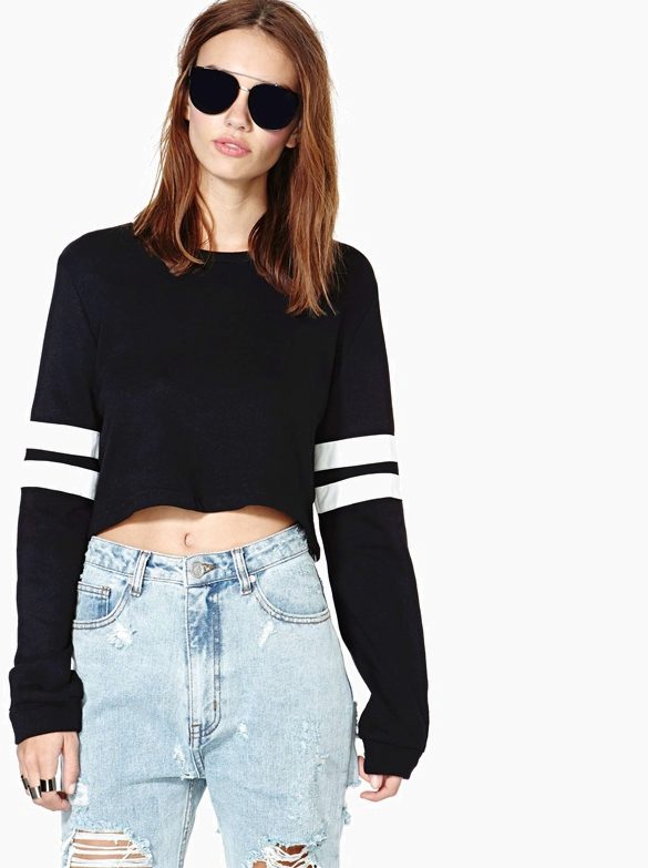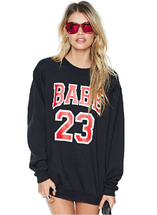 Sweatshirt is a type of sweatshirt. It does not have a clasp, so it wears over the head, and is also often decorated with appliqués and pockets. Black sweatshirt is perfect for the embodiment of everyday style. It can be worn with short denim skirts and high heel shoes.