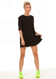 Black hoody-dress with a hood is very popular among young people. You can wear this over a gray t-shirt. Black tights will add elegance to this look. Do not forget about accessories! Black glasses, watches and handbag perfectly complement the fashionable bow.
