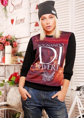 If the black sweatshirt seems boring to you, then you can find an option, decorated with stylish lettering, pockets or cuffs of other colors.