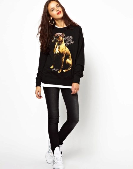 Black sweatshirt should be in the wardrobe of every fashionista. Today in a trend sweatshirt-mantle and sweatshirt-dress. These models allow you to show individuality, look spectacular and unusual. In this outfit you will always be the center of attention.