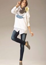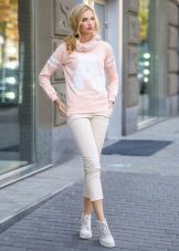 Sweatshirt oversized goes well with jeans, creating a casual style casual. This is an image in which it is convenient and comfortable. It is easy to relax at home, go to the movies with friends or just walk the streets. Stylists recommend wearing leather or textile sneakers, shoes, shoes, and for lovers of height stilettos are the ideal option.