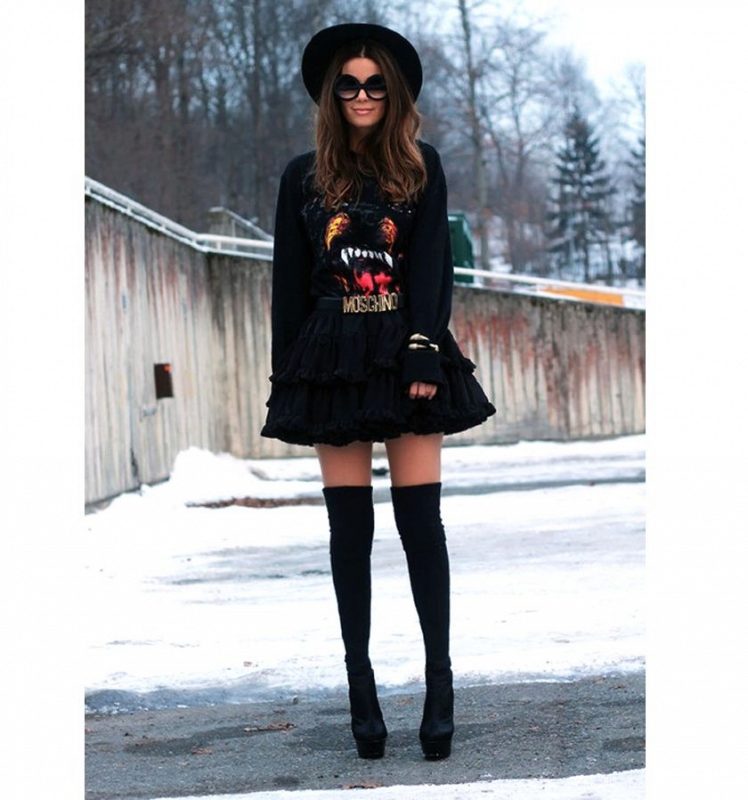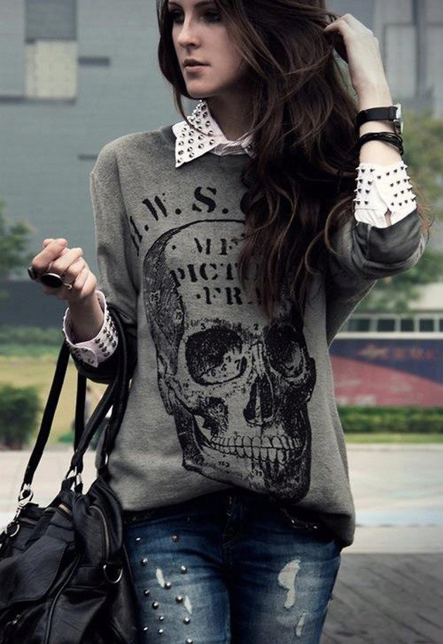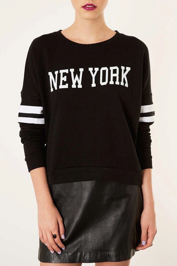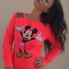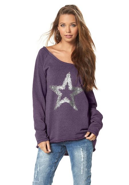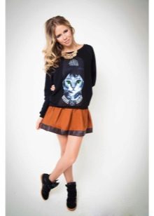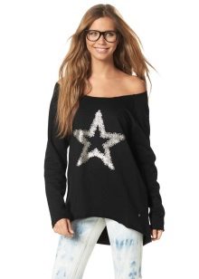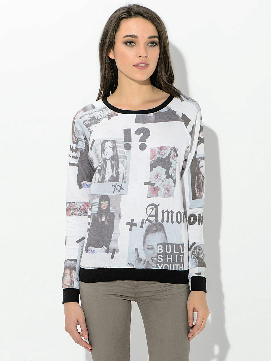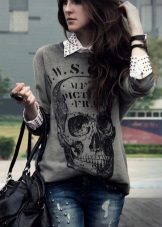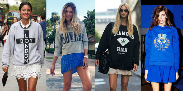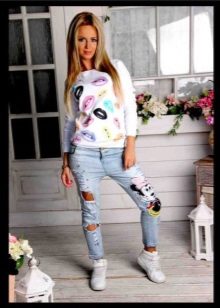 For meetings with friends, going to the cinema, walks, sweatshirts with various funny inscriptions, drawings and prints will fit in perfectly. They are combined with jeans, skirts, tight pants.