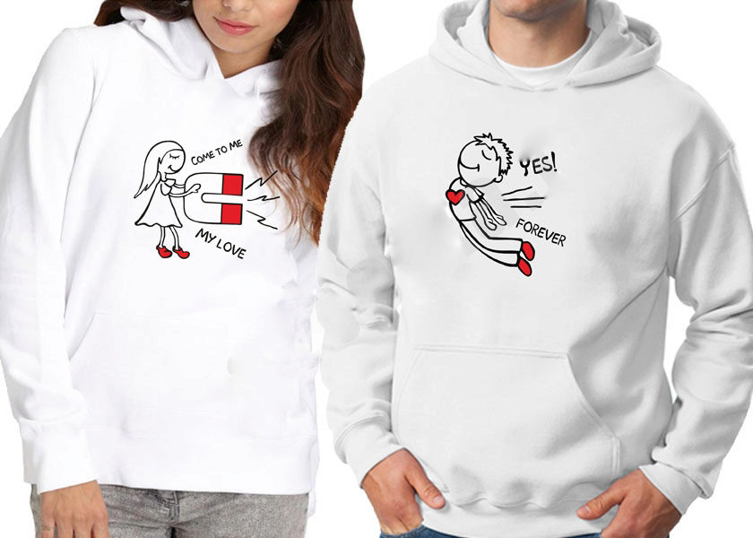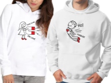 Paired hoodies - for the guy and the girl. Very cute little things with various inscriptions or drawings that show the romantic relationship of lovers.