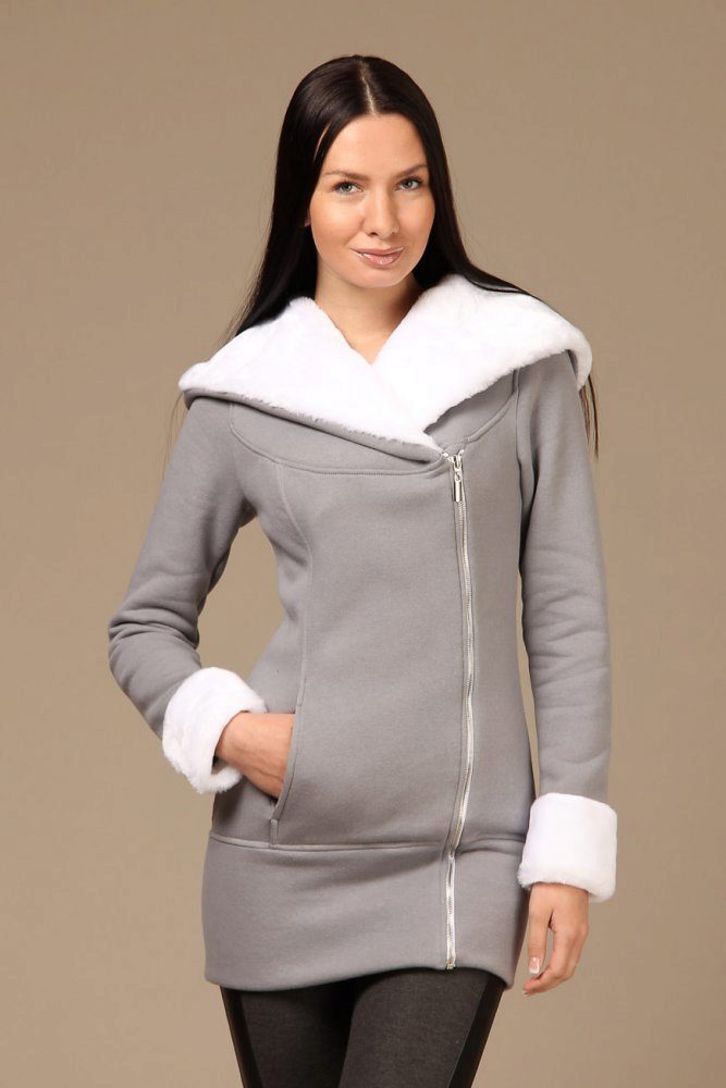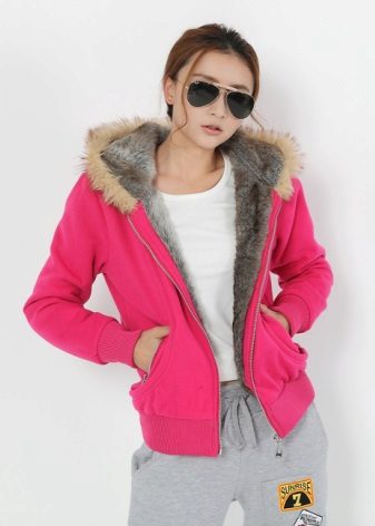 With hood trim fur. In some cases, a sweatshirt with fur can replace a jacket and coat, an indispensable thing for playing sports in the open air at low temperatures.