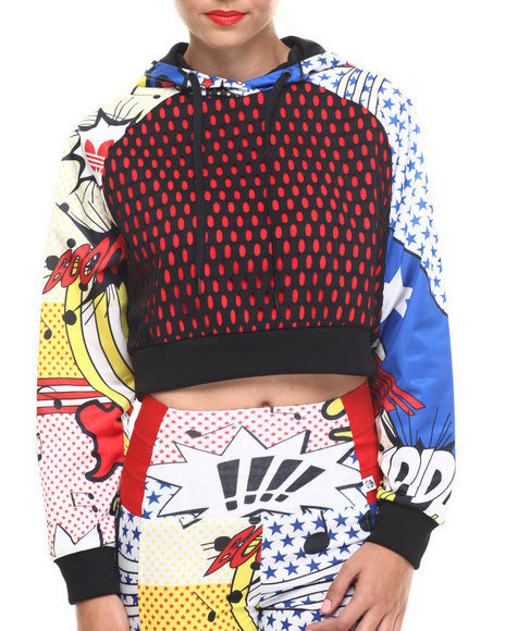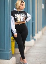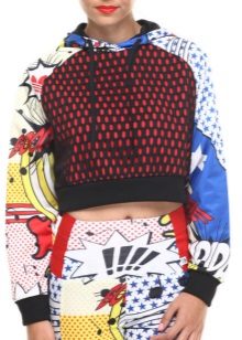 Many students and schoolchildren prefer to wear a cropped hoodie in combination with a skirt or denim skinny. This model is a short version of the sports hoodie with a hood.