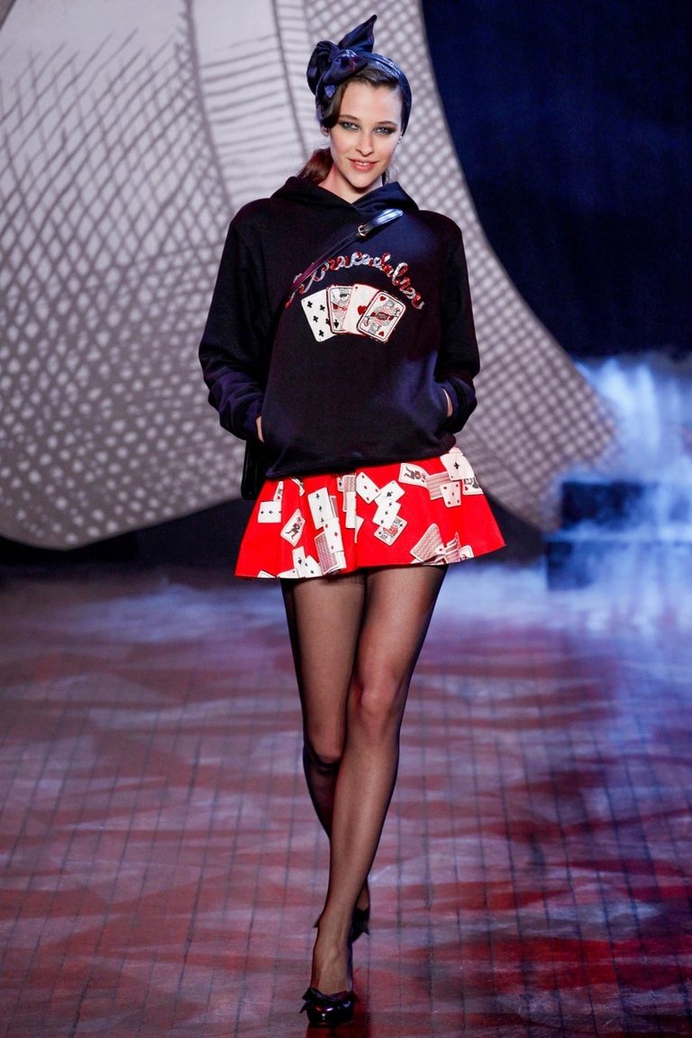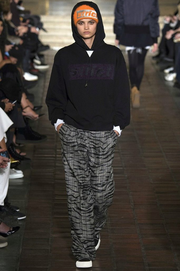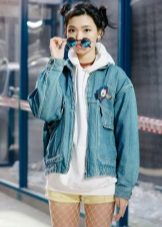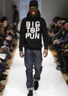 Teenagers like hoodie with ears on the hood, or inserts of fur and textured knitwear, decorated with drawings and inscriptions. Fashion for inscriptions on hoody came from hip-hop.