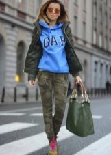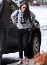 - With sneakers. Sneakers can be bright, neutral, with colored laces or decorated with a color print. In addition, sneakers and hoodie - a convenient option for every day. In the same category, you can include sports shoes, sneakers.