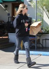 - With uggs or unts. This warm and cozy shoes perfectly fit in style and comfort with hoodie.