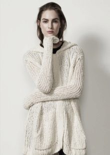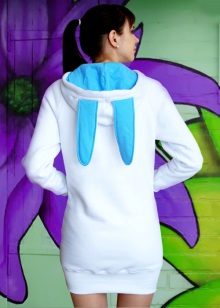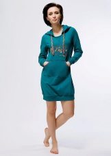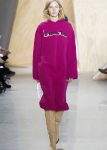 Young women became fans of fashionable hoodie-dresses with a hood that blends perfectly with leggings. Visually, this model hides the flaws of the figure and makes the image soft and free.