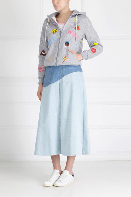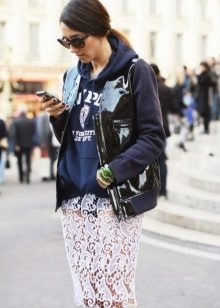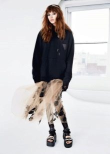This trend is also observed in the compatibility of hoodies with other clothes - dresses, trousers, mini and maxi skirts, shirts and batch-dresses, etc. For certain hoodies, shoe lines, bags and outerwear are being developed.