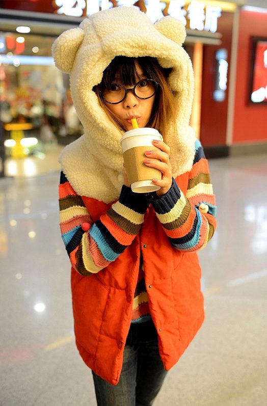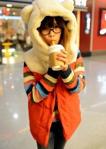 Very fond of young girls hoody hooded, imitating the head of an animal (lynx, bear, cat, etc.) with ears in different variations.