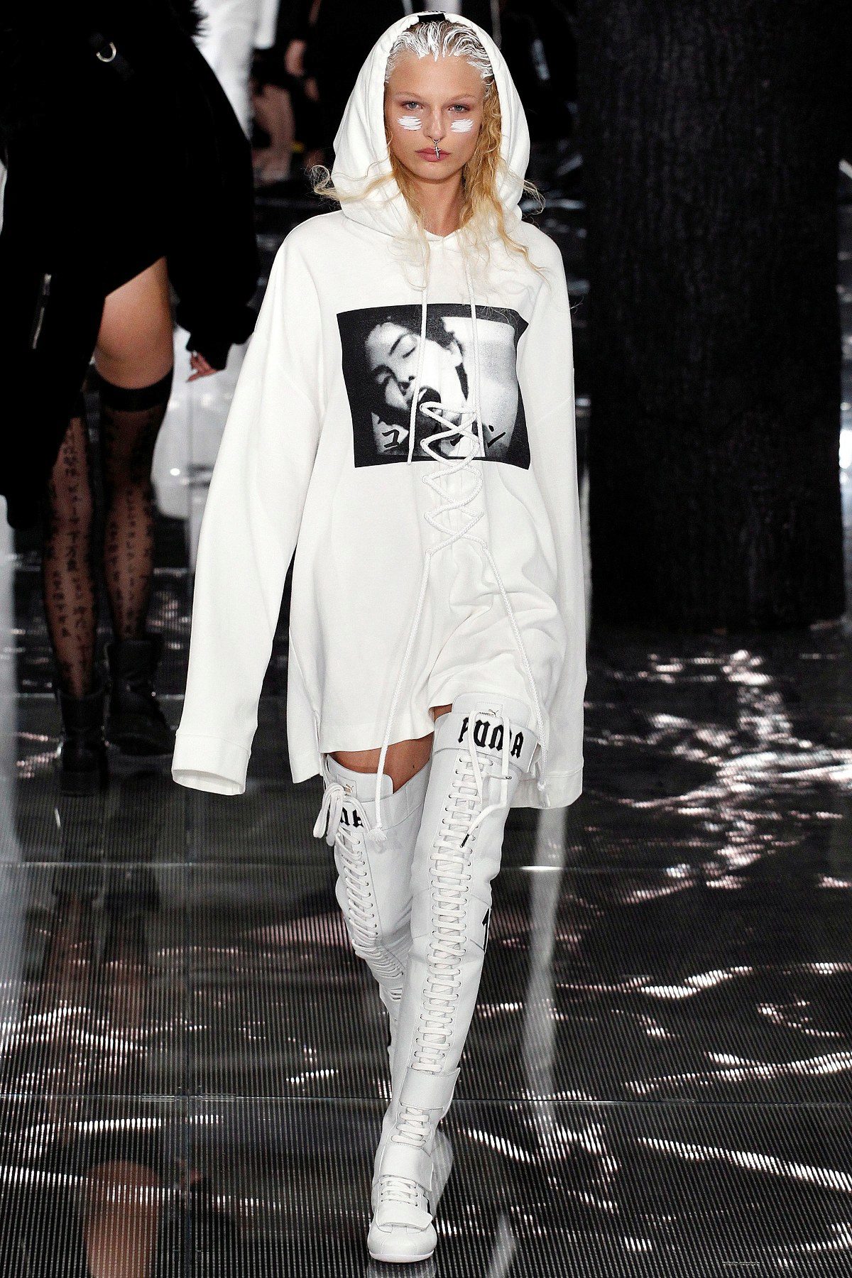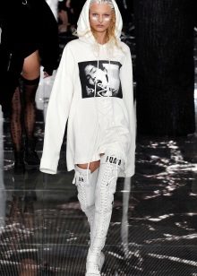 In the latest trendy seasons, hudooi draws special attention to the length. More and more variations on the subject of long hoodie and ultrashort. Hoodie length to mid-thigh becomes classic.
