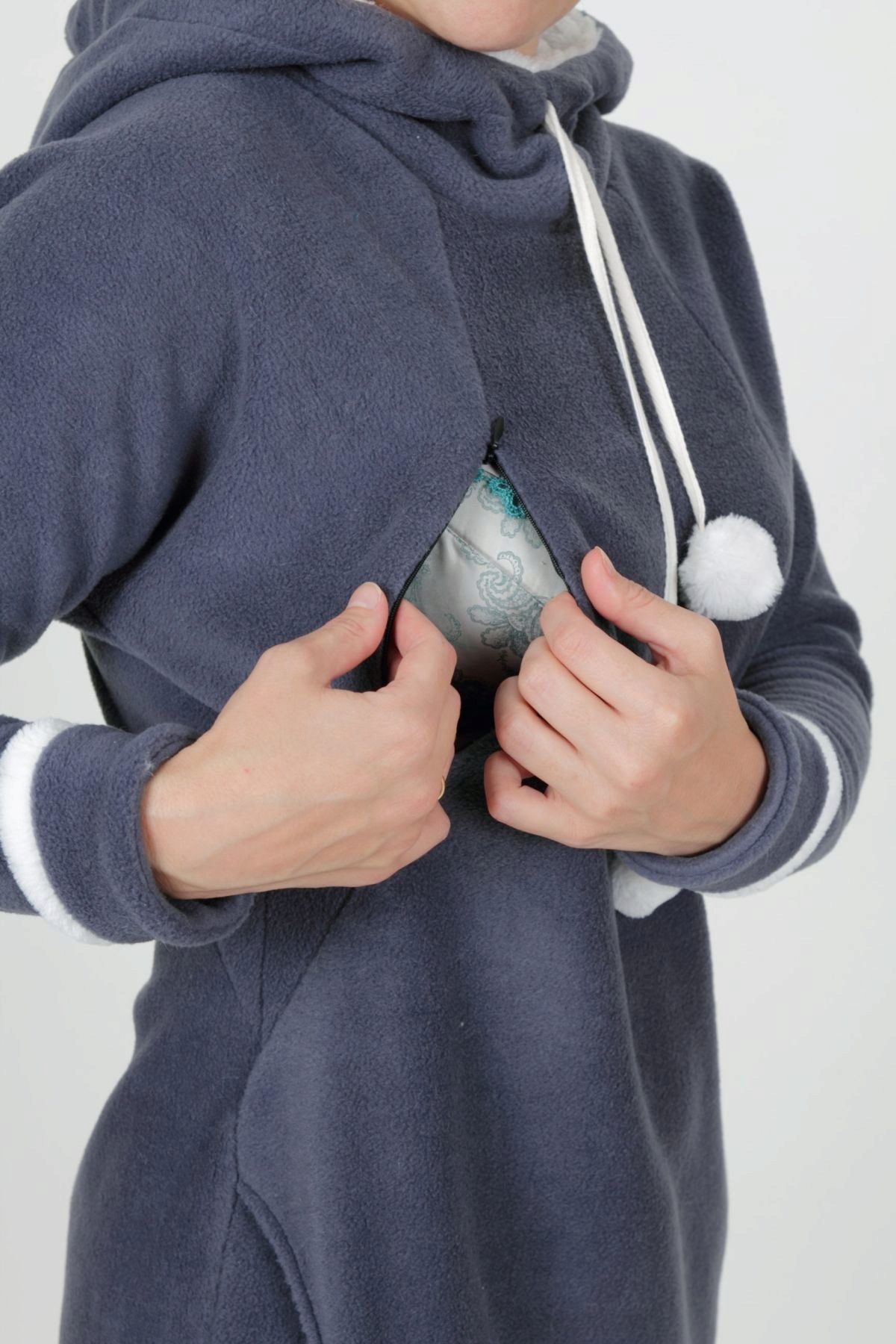A great solution for versatility, comfort and convenience have become hoodie for pregnant and lactating women. Such hoodies allow you to feel young, warm and most importantly, allows you to hide the figure flaws that often accompany this period of life of a young mother.