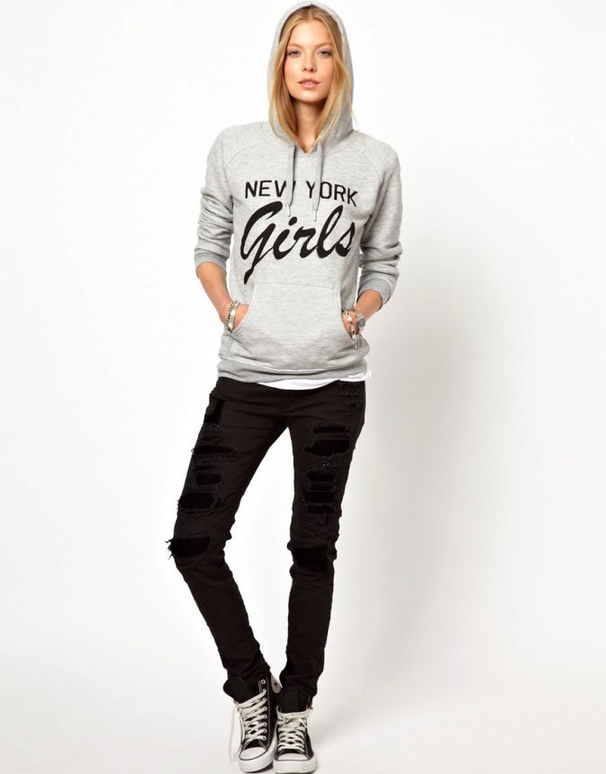 Any young woman of fashion will choose for herself Hoodie by its nature and way of life. In this style, intertwined directions of punk, hippies, sports chic, swag and grunge, glamor and rock and roll.