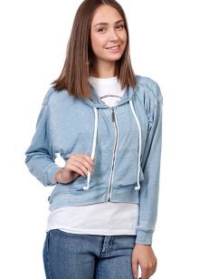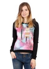 Best of all hudibadi will look with jeans, leggings, leggings, shorts. Sweatshirts are combined with sports pants, skirts and dresses. Under hoodies and sweatshirts, you can wear tops and shirts, and if we are talking about hudibadi shirts, then, on the contrary, you can wear sport sweatshirts and sweatshirts and jackets from above. Regardless of the model, clothes hudibadi will look bad with elegant and richly decorated evening attire. But if you use things of a certain style, you can create an image even with a skirt to the floor.
