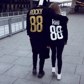 A separate category in nominal sweatshirts is occupied by paired models. They are performed, as a rule, in the same style, but may differ in the color of the lettering or decor. Paired sweatshirts will be a great gift for a couple in love on the anniversary of dating, engagement, wedding or for any other reason.