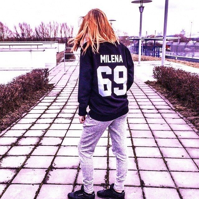 Large inscriptions look great on sweatshirts in black, dark blue, white, gray, red, yellow, orange, turquoise. Letters and numbers should be contrast - white, black or red.
