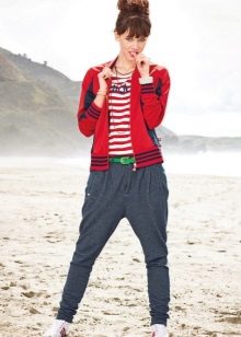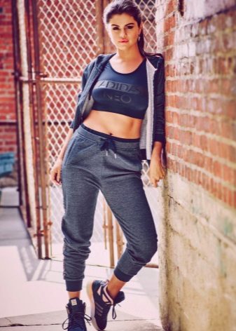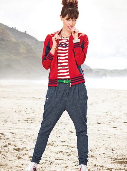 Sports suit. The most obvious option. The stores are many sets, which include sweatshirts. Plus these suits - they can be split up and wear each element separately. You don’t need experiments with shoes: sport style is only combined with sneakers or sneakers.