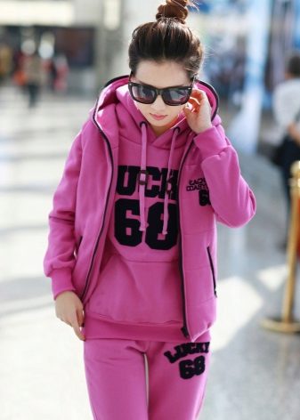 The sports suit two is ideal for sports. But the sweatshirt from him is suitable for other outlets - with jeans for shopping, with a dress for a walk.