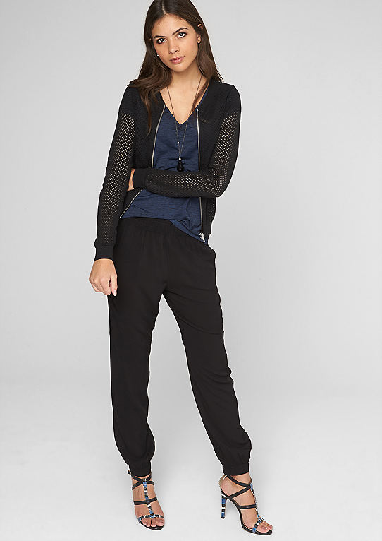 - Elongated models. Anything below the middle of the thighs - elongated options. They replace cardigans and look great in a casual style with tight jeans.
